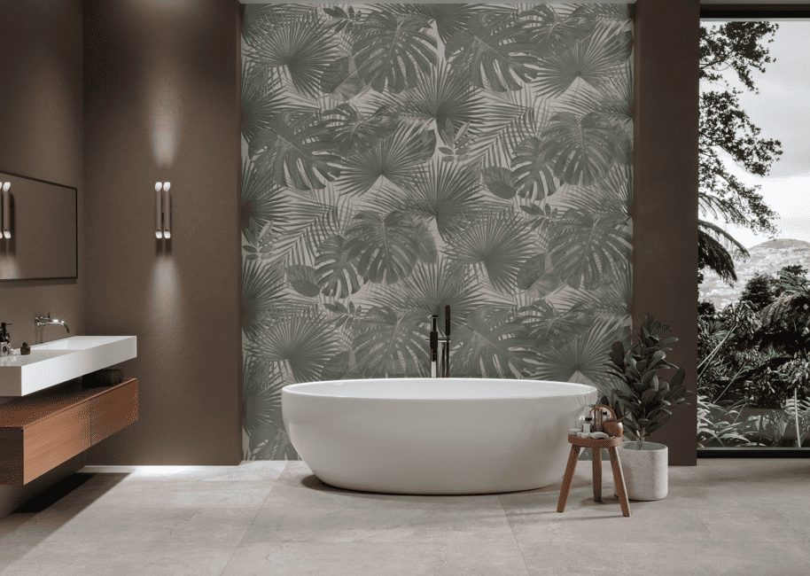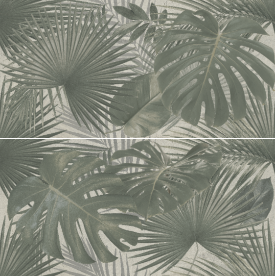 以熱帶植物為靈感,融合了大面積的龜背芋與扇形棕櫚葉圖騰,呈現層次豐富的綠意紋理。