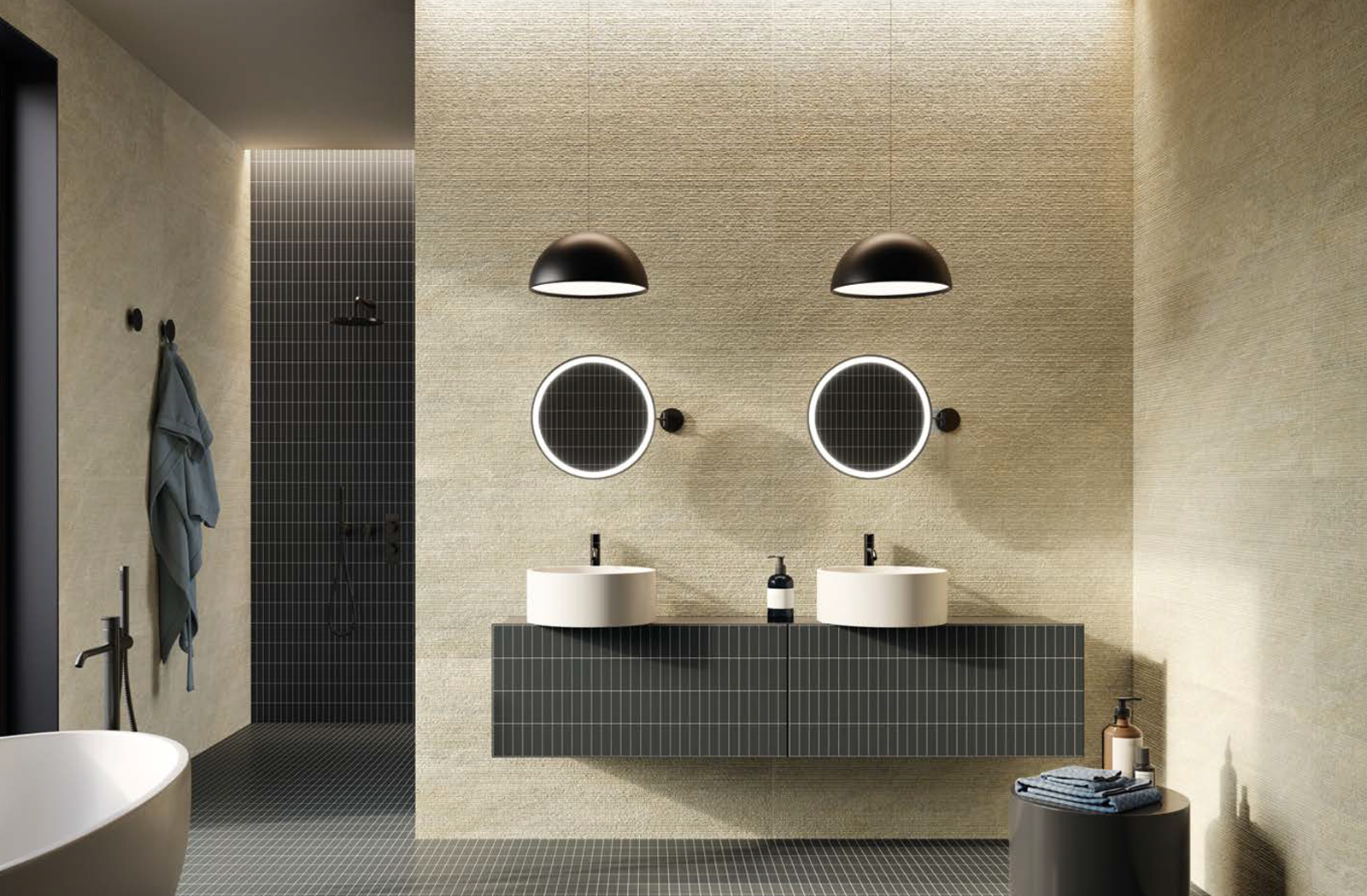 低調中展現高級質感。米色調柔和溫潤,極具現代感,無論用於浴室、客廳或商業空間,不僅視覺上有延伸感,觸感亦具立體層次,都能完美融入,提升整體空間的質感與氛圍。